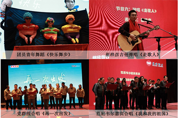 文藝演出部分,員工們紛紛獻上了自己精心準備的節(jié)目,節(jié)目精彩紛呈,有來自生產(chǎn)一線員工、黨群線的合唱,有來自營銷技術(shù)的詩朗誦,有來自綜合財務、團員青年的個性舞蹈,有個人才藝吉他彈唱、獨唱,給大家?guī)砹藲g聲笑語。合資企業(yè)范尼韋爾工程公司的管理團隊也來到現(xiàn)場表演了《我和我的祖國》合唱節(jié)目,為大家助興。